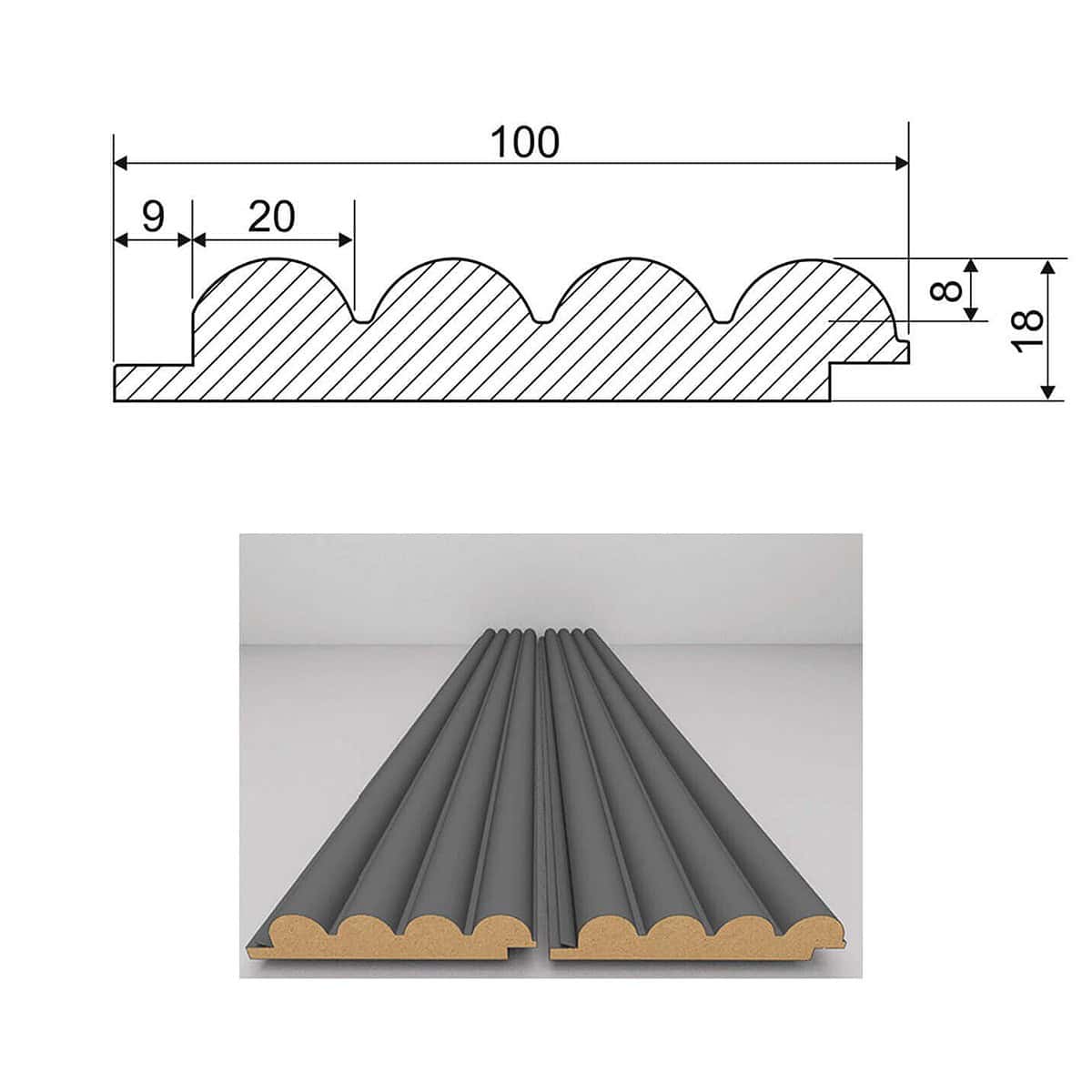3D Πάνελ τοίχου MDF Graphite 2800 x 100 x 18mm, №01PA.2200.726