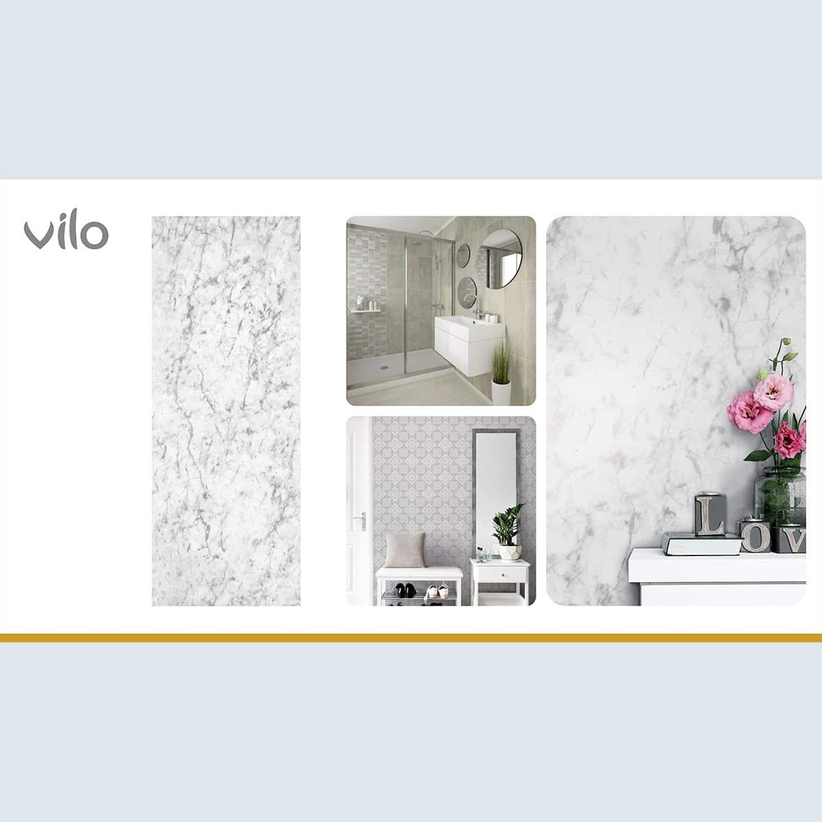 Πλαστική Επένδυση Ραμποτέ PVC VILO Gold Marble, 2650 x 250 x 8mm