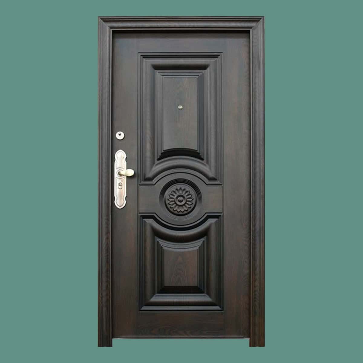 - Φύλλο πόρτας με διπλή θωράκιση από γαλβανιζέ λαμαρίνα.